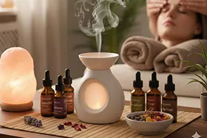 kiegészítők, gondosan válogatott illóolajok és aromaterápiás diffúzorok, valamint kíméletes